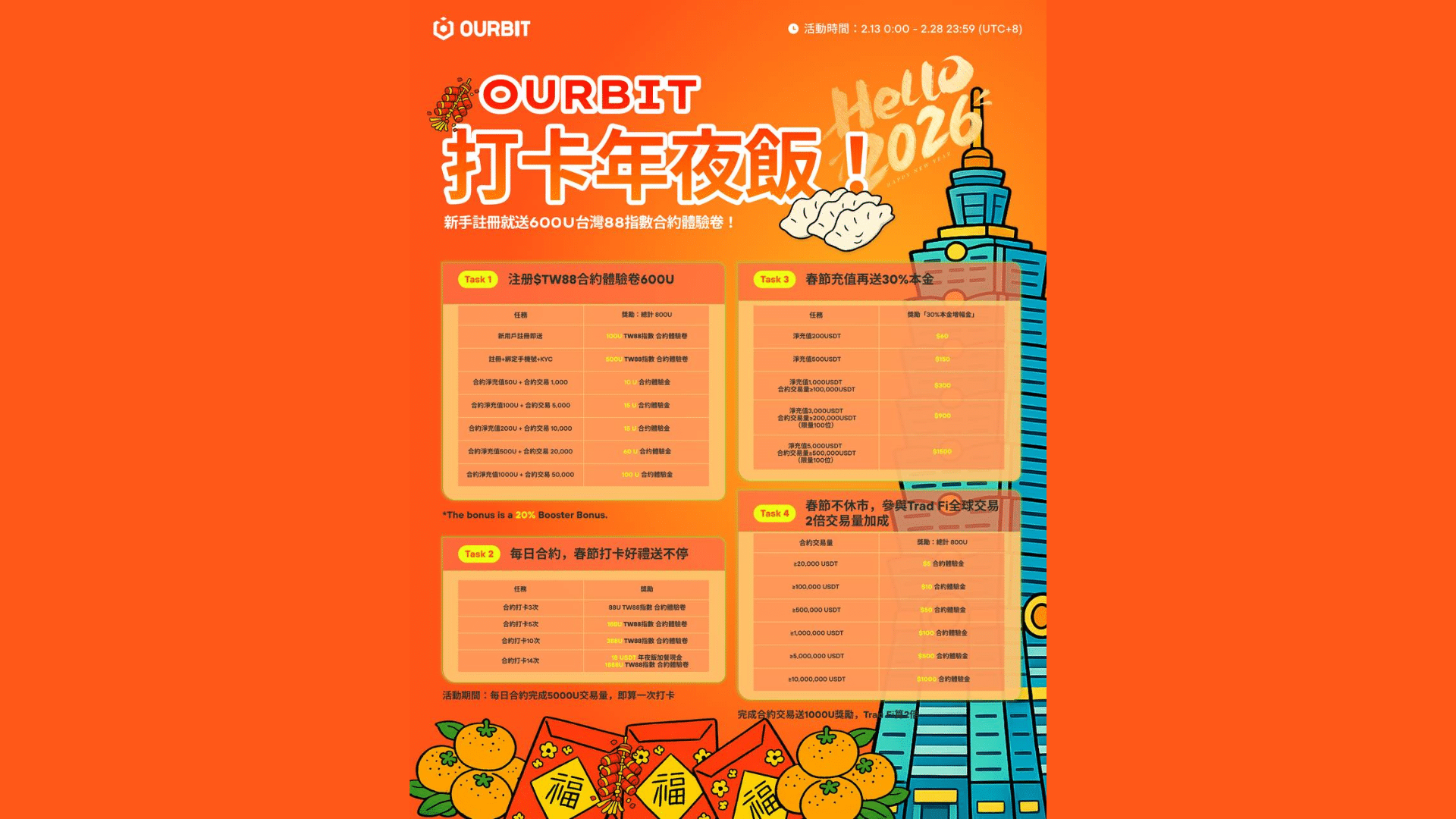 區塊 鏈, 區塊鏈教學 Blockchain Writer 冷靜的幣圈玩家 2020-08-26 區塊鏈產業新聞 台灣股指上鏈了?OURBIT 上架 $TW88,Web3 用戶的台股新選擇 傳統台股交易時間受限。Web3 用戶卻習… 閱讀更多 » 2026-02-13 尚無留言 區塊鏈產業新聞 《OURBIT 打卡年夜飯!0 成本領 600U 台灣股指合約,新春最高拿 1888U!》 今年過年,不只吃年夜飯,還能「打卡賺合約… 閱讀更多 » 2026-02-13 尚無留言 區塊鏈最新趨勢 《不是每個人都適合用加密貨幣交易機器人:先搞清楚這三件事》 前言:工具本身不是問題,錯誤期待才是 交… 閱讀更多 » 2026-01-26 尚無留言 區塊鏈最新趨勢 《從手動加密貨幣交易到半自動策略:成熟交易者的必經轉變》 前言:不是偷懶,而是風險管理 當交易者開… 閱讀更多 » 2026-01-25 尚無留言 區塊鏈產業新聞 《為什麼多數人「學會加密貨幣交易」後,反而更容易虧錢?》 前言:問題不在不會,而在「太會」 在加密… 閱讀更多 » 2026-01-24 尚無留言 區塊鏈產業新聞 《為什麼多數區塊鏈專案不是失敗,而是「撐不到商業化」?》 前言:多數專案的問題,不在方向,而在時間… 閱讀更多 » 2026-01-23 尚無留言